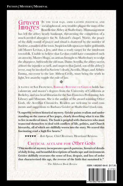OVERVIEW It is the year 1141, and the nuns of the Benedictine Abbey at Shaftesbury face new tribulations. The abbey is near bankrupt, threatening the completion of a much-needed altarpiece for St. Edward’s chapel. Worse, the tranquility of the daily round of prayer and ritual is disrupted by the murder of Saviette, a maiden of the town. Suspicion falls on Master Levitas, who is a Jew and thus a ready target for the intolerant townsfolk. Convinced that Levitas could not have committed the crime, Master Hugo, brought to Shaftesbury to sculpt the altarpiece, befriends the old man. Dame Averilla, now the abbey sacrist, abhors the prejudice as well, and suspects that Jared, son of the abbey’s reeve, is responsible for Saviette’s death. Averilla, Hugo, and Abbess Emma must shelter the falsely accused Levitas while they discover the truth, lest chaos topple the rule of law.